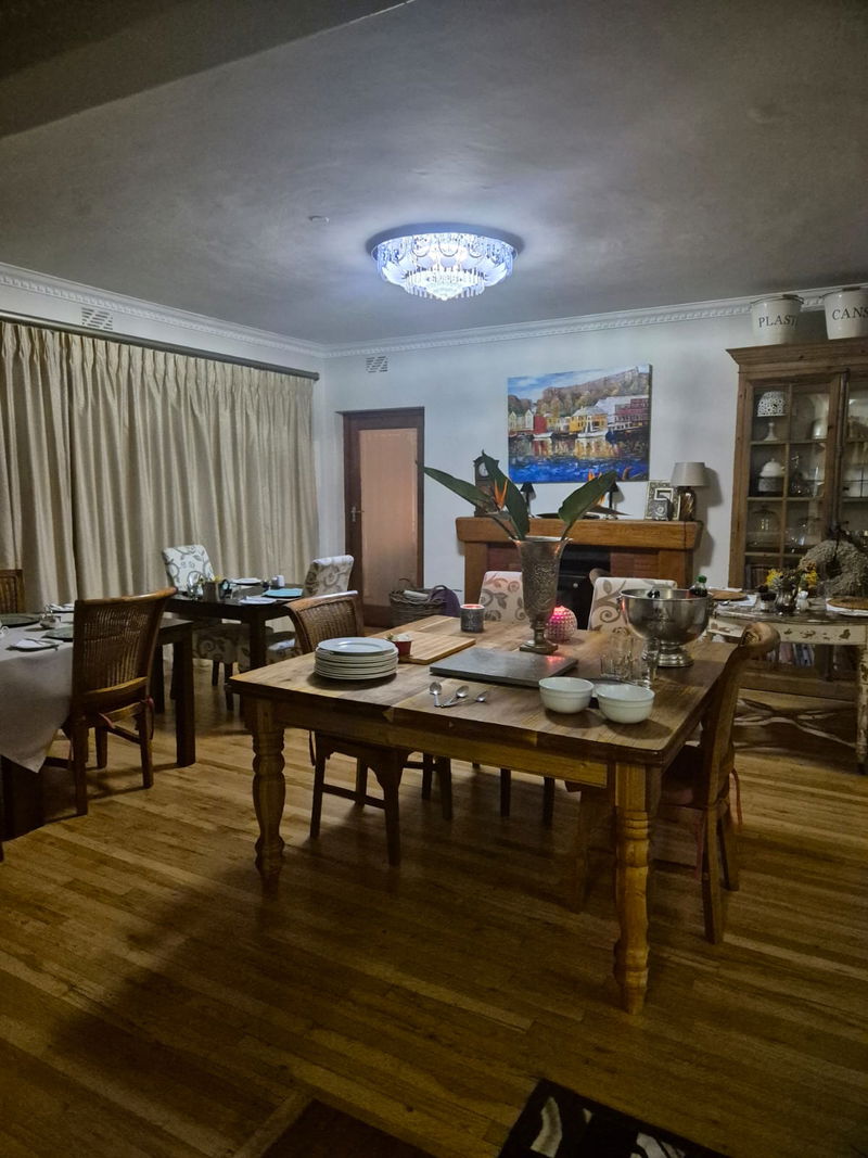 There is a large dining room/lounge area leading out onto the garden and braai area